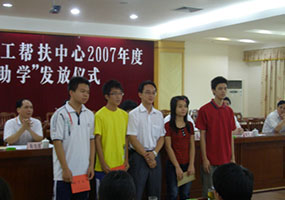 2007年8月21日,朱榮業總經理(前排左三)與受資助貧困大學生合影